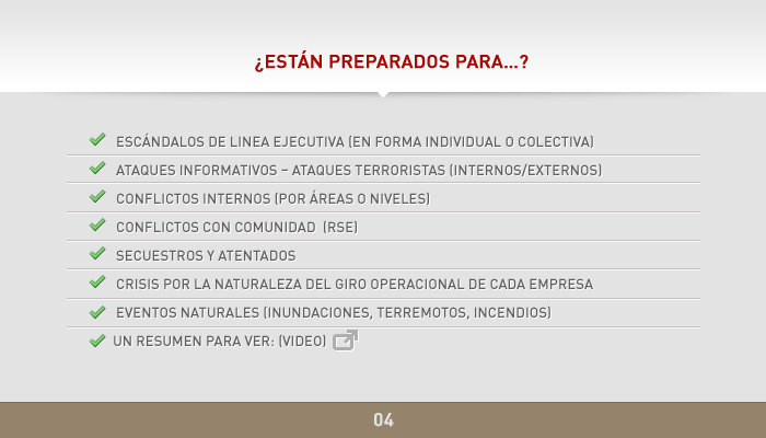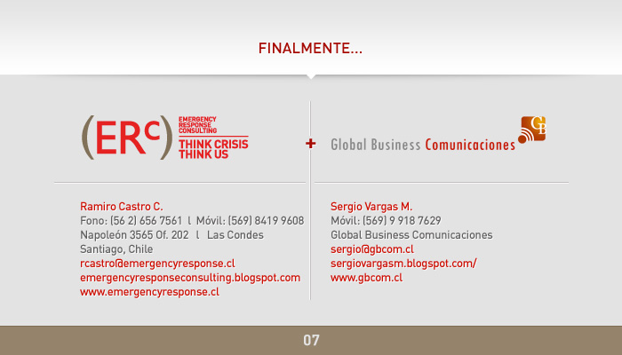 "Ofrecemos una propuesta sinérgica, integrada y distinta a las actualmente existentes en el mercado"ERc..., Think Crisis, Think Us...
